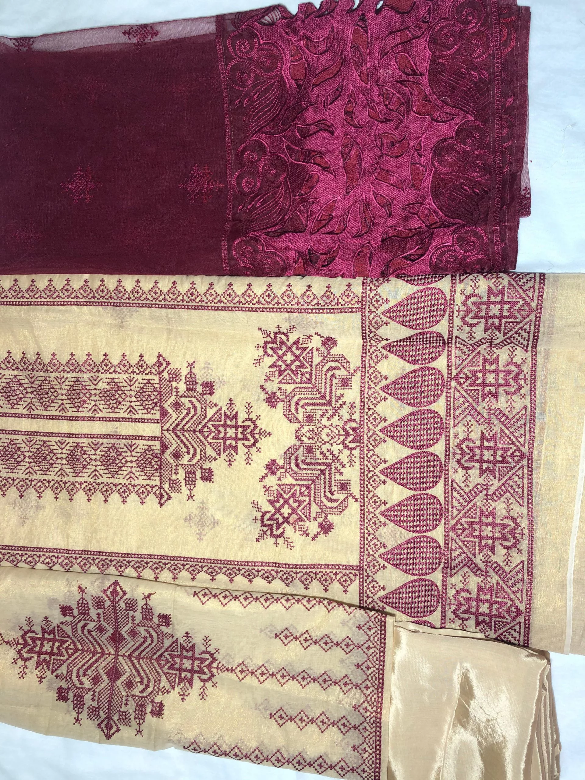 - Fabric Dimensions: The suit includes a generous fabric length of 5 meters, providing plenty of material for your design. It comes complete with matching embroidered sleeves and a coordinating dupatta, making it a complete Asian dress set.